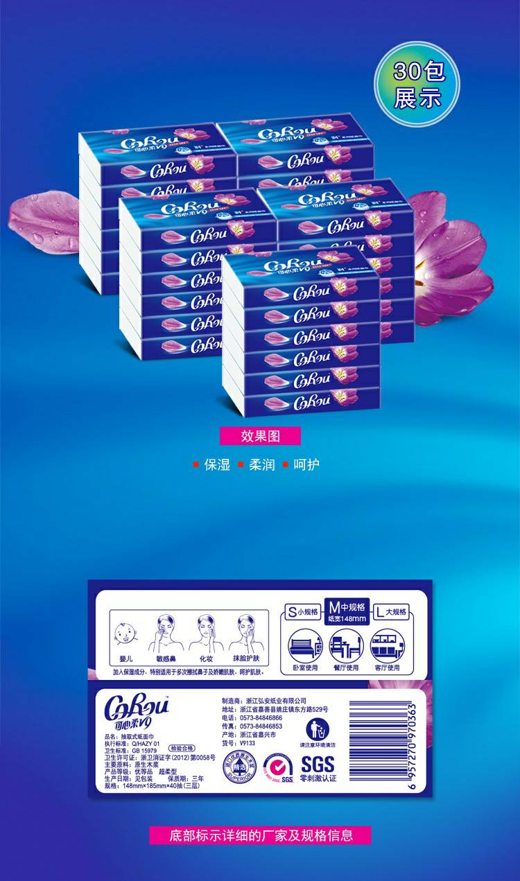 CoRou V9润+系列CoRou云柔系列白色木浆40抽