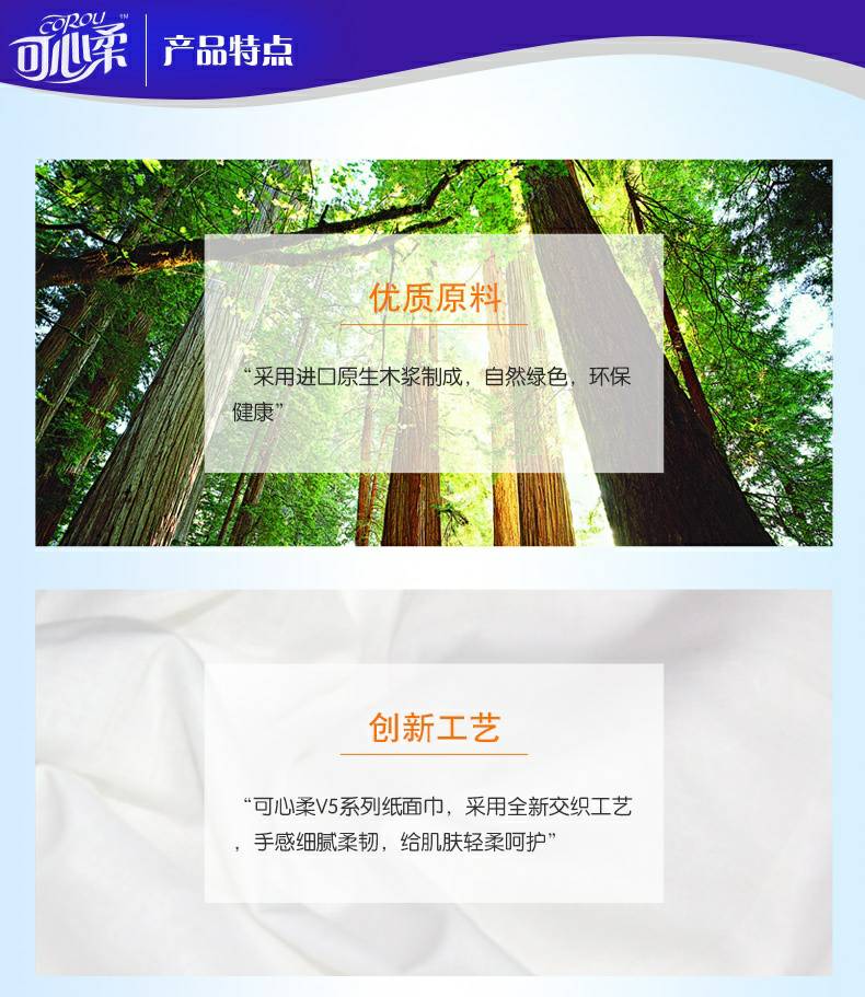 可心柔 V5系列CoRou云柔系列白色木浆60抽