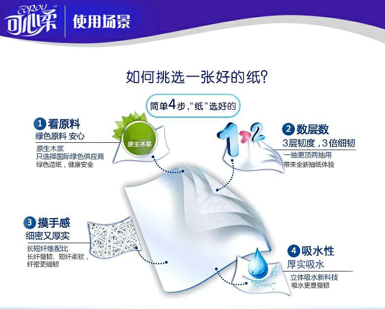 可心柔 V8系列CoRou云柔系列白色木浆110抽